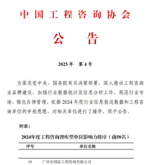 廣州國際咨詢公司榮獲《中國工程咨詢》雜志第二屆優(yōu)秀論文獎